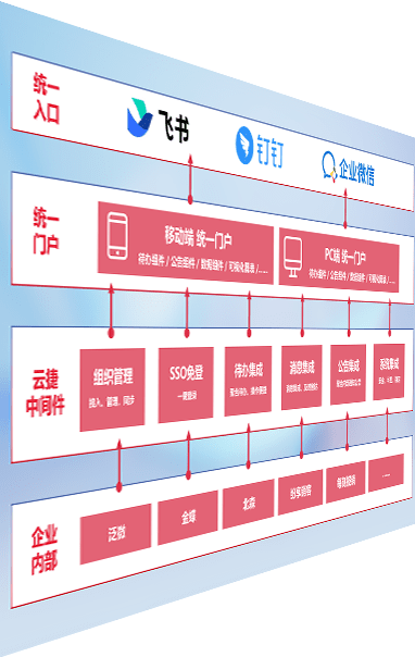 对协作平台提供支持服务,,,,支持企业应用与协作平台对接,,,,包含组织同步、、消息集成、、待办集成等。。。。支持目前主流的协作平台:钉钉、、、、企微和飞书。。。